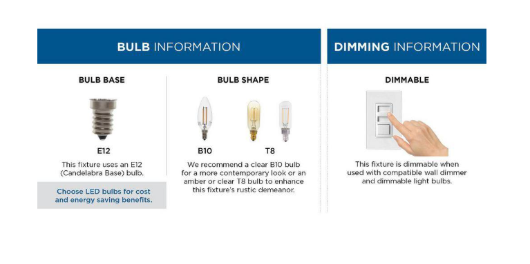 - Uses (4) 60-watt candelabra base bulbs or LED equivalent, that is sold separately, and dimmable when used in conjunction with a dimmable bulb