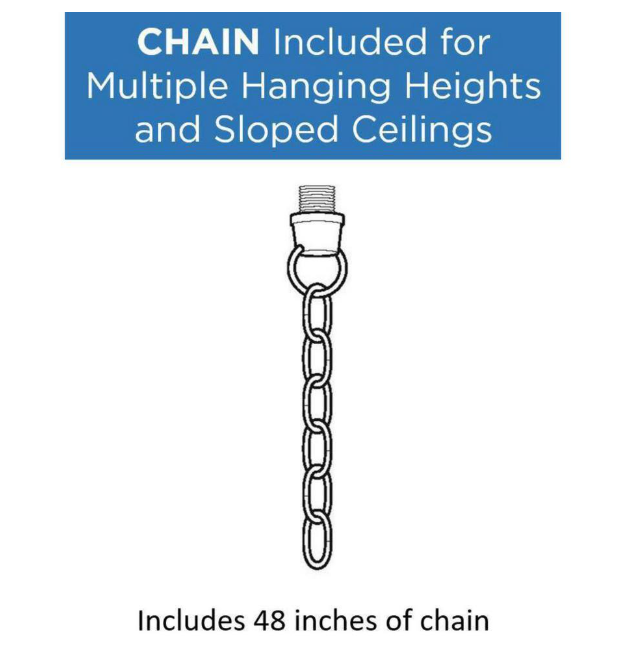 - Includes 48 in. of chain for a variety of ceiling heights and can be used on a sloped ceiling