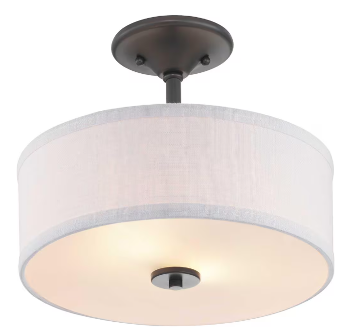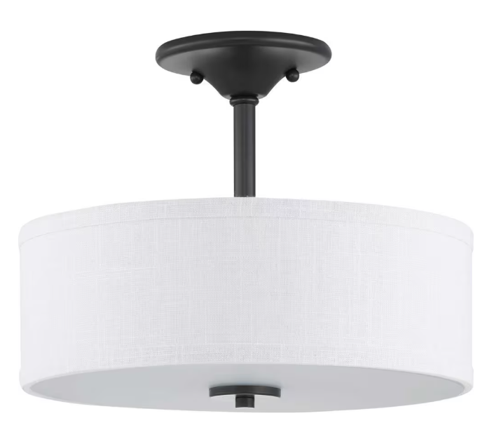 Harkening back to a simpler time, the Inspire Collection freshens traditional forms with flowing lines. The 2-light semi-flush fixture features an etched glass diffuser with a summer linen shade finished with Graphite details. This fixture is suitable for a variety of design styles, including Modern, Traditional and Farmhouse and the simple design is a perfect complement to a variety of fixture collections.