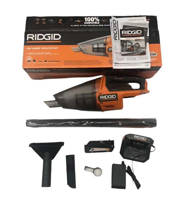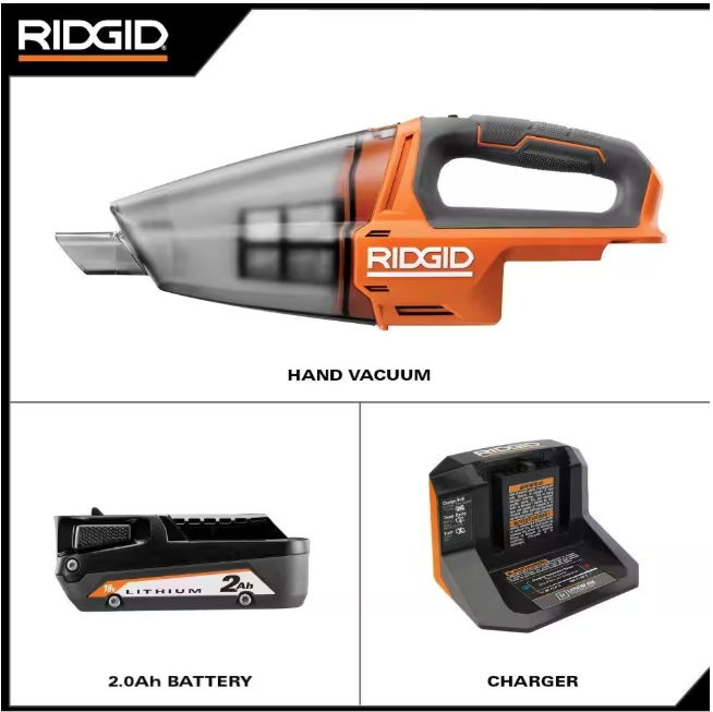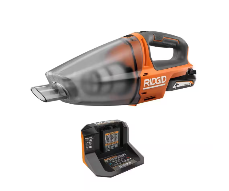 RIDGID 18V Cordless Hand Vacuum Kit with 2.0 Ah Battery and Charger