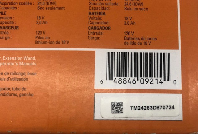 - Includes: R8609021K Hand Vacuum, 2.0Ah Battery, Charger, Extension Wand, Utility Nozzle, Crevice Nozzle, and Operator's Manuals