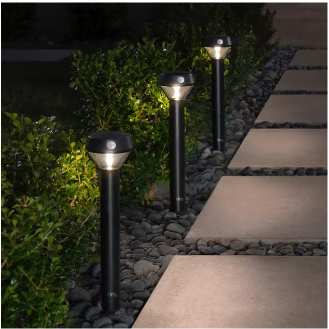 Solar-powered Pathlight that shines up to 80 lumens of 360-degree white light on walkways, driveways and pathways when motion is detected. Connect Solar Pathlight to the Ring Bridge to enable customizable smart controls, adjust the brightness and motion sensitivity and set schedules, all in the Ring App. You can also link with other select Ring Smart Lights, compatible Ring doorbells and cameras, and select Alexa-enabled devices to activate when motion is detected.
