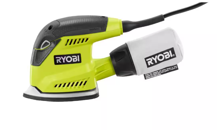 RYOBI 1.2 Amp Corded 5.5 in. Corner Cat Sander with Dust Bag, Sample Sandpaper & Storage Case