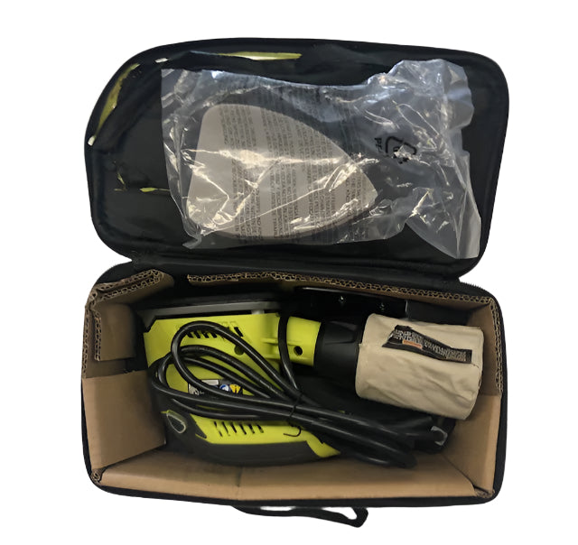 Previous buyer broke the zipper on the storage bag trying to open it so they decided to cut the case open (see picture) before returning it. I was able to get the zipper to work but the tab is broken off (see picture). The tool itself is still brand new never been used. RYOBI introduces the 1.2 Amp Corded 5.5 in. Corner Cat Sander with Dust Bag, Sample Sandpaper, and Storage Case. This sander features a distinctive shape that makes it ideal as both a pad and corner sander. This versatile tool is built around a powerful 1.2 Amp motor that delivers up to 12,500 OPM (orbits per minute) for quick and efficient sanding. The on/off switch is protected from dust, which is collected in a bag for less obstruction and easier cleanup. A variety of useful pads is included, as well as a carrying case for easy storage and portability. The 1.2 Amp Corded 5.5 in. Corner Cat Sander includes assorted pads, dust bag and a tool storage bag.