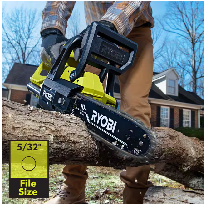 The RYOBI 10" Replacement Chain is the best solution for replacing your damaged or dull 10" chain. It is best for gas and cordless saws, compatible with most brands. The chain has a .043" gauge, 3/8" low profile pitch, 40 drive links, and 5/32" file size.