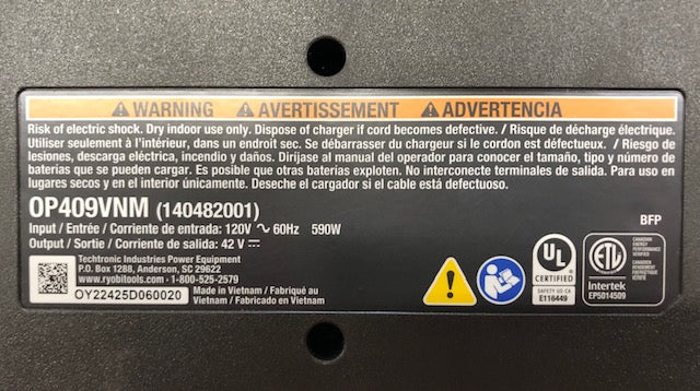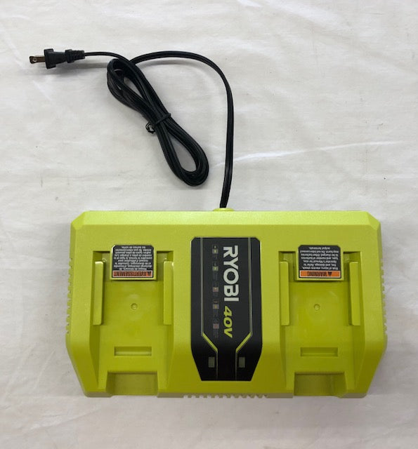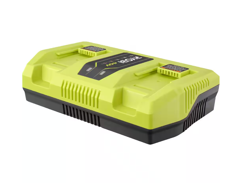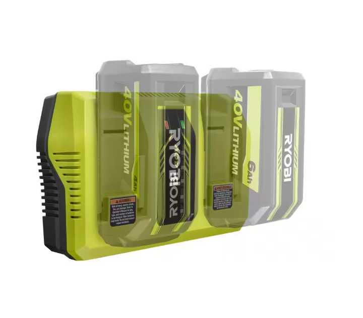 RYOBI introduces the 40V Dual-Port Rapid Charger. Compatible with all RYOBI 40V batteries, this Dual-Port Rapid Charger gets 4X faster charging compared to RYOBI's 40V Charger with USB Port (OP403A) This charger features dual active battery ports for simultaneous charging. LED indicator provides charge status as the battery is charged and maintained. Fan cooled technology provides improved heat management during use, which protects your battery and extends its life. This charger is perfect for anyone with RYOBI 40V batteries. Spend less time charging batteries and more time getting yard work done. The charger's technology protects and improves battery life by monitoring battery charge current and temperature. This charger is wall mountable for user convenience and storage.