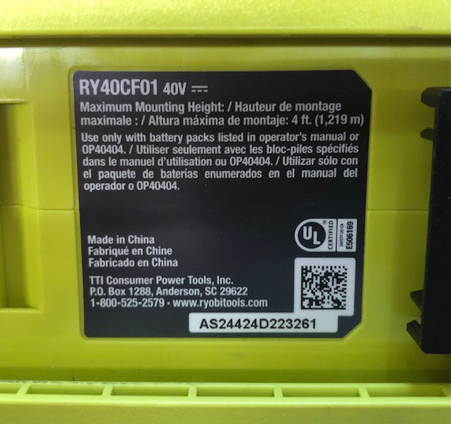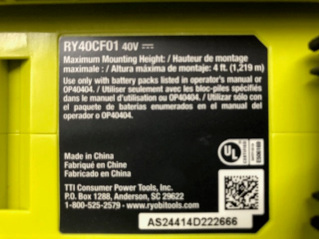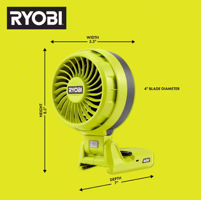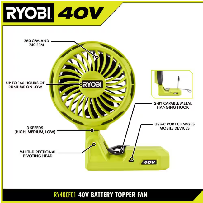 - Includes: (1) RY40CF01 40V Battery Topper Fan
