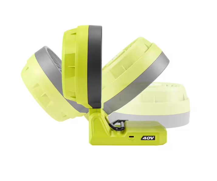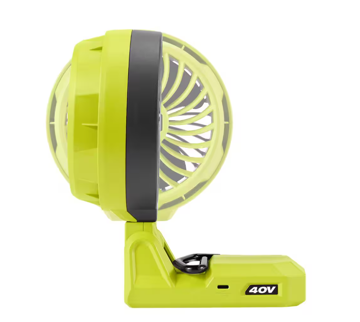 Expand your RYOBI 40V System with the RYOBI 40V Battery Topper Fan. This fan delivers exceptional airflow with 260 CFM and 740 FPM, all while maintaining a compact size, making it convenient and portable for any occasion. The 3 speed settings and multi-directional pivoting head offers a customizable experience and allows airflow to be directed to where it's needed. Easily mount to materials with the 2-by metal hanging hook, providing versatility in any situation. With up to 166 hours of runtime on low speed using a 12Ah 40V battery, this fan provides extended runtime and reliable performance for a seamless, uninterrupted experience. The integrated USB-C port charges mobile devices, allowing convenient on-the-go power. Best of all, this fan is part of the RYOBI 40V System of over 85 Products that all work on the same battery platform. Battery and charger sold separately.