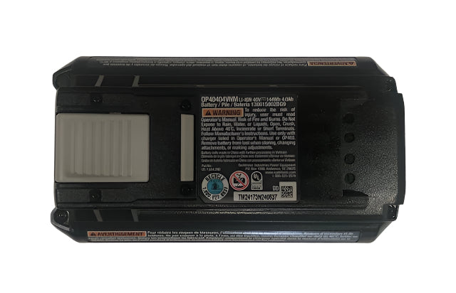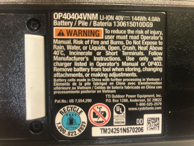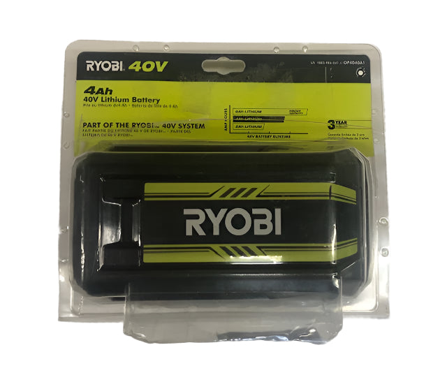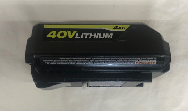 The RYOBI 40V 4Ah Lithium Battery features up to 2X more runtime than the previous model for an improved user experience. INTELLICELL battery technology features advanced electronics allowing batteries to last longer, think smarter and deliver up to 30% more power. The COOL-CORE design reduces temperature to optimize battery performance and extend battery life. Advanced lithium cells maximize performance and runtime during demanding applications. The robust design and anti-vibration technology increases durability and enhances user experience. This battery features a high visibility LED fuel gauge to clearly indicate remaining runtime. Easily install and remove the battery with the secure quick-release button. Best of all, it is part of the RYOBI 40V system. This 40V 4Ah Lithium Battery is backed by the RYOBI 3-year manufacturer warranty and includes (1) OP4040A 40V 4Ah Lithium Battery and Operator Manual. Charger sold separately.