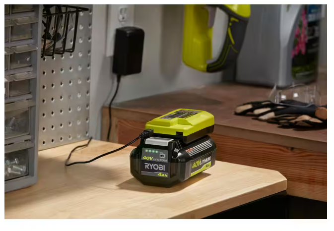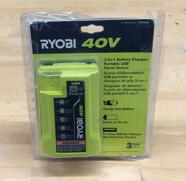Charge your 40V lithium-Ion batteries with this charger from RYOBI. Compatible with all RYOBI 40V batteries, this charger is equipped with a USB power source to charge your small electronics while plugged in. This compact charger has an LED light indicator that shows the status of battery. Featuring innovative charging technology, it is equipped to protect and extend the life of the battery. You can trust this charger to keep your batteries work-ready all season long.