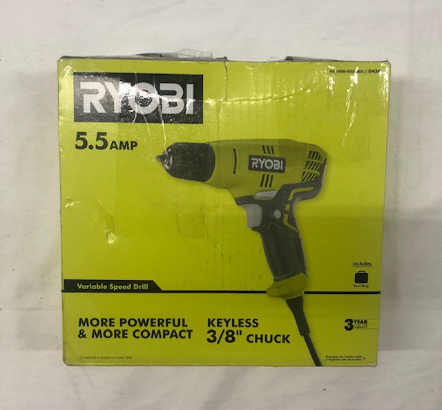 RYOBI introduces the 5.5 Amp Corded 3/8 in. Variable Speed Compact Drill/Driver with Bag. The 5.5 Amp 3/8 in. Variable Speed Compact Drill/Driver delivers up to 1600 RPM for powerful drilling in a variety of materials. The variable speed trigger helps you match the speed to the application, while the lock-on feature enables continuous drilling and helps to reduce operator fatigue during long drilling times. Designed for ergonomic use, the handle features the GRIPZONE overmold for comfort on any job. The 5.5 Amp 3/8 in. Variable Speed Compact Drill/Driver includes the 6 ft. power cord (Tool Storage Bag Not Included).