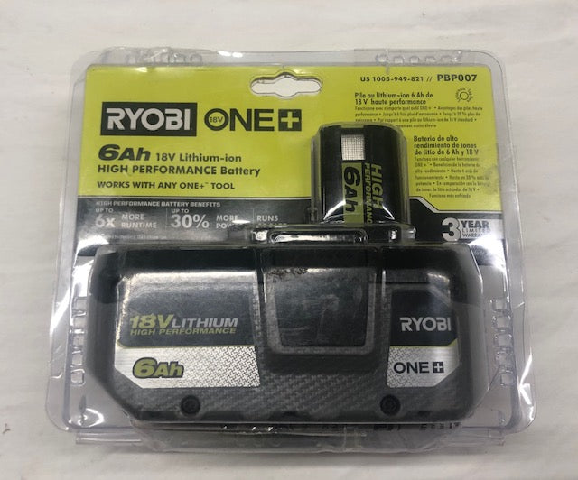 - Includes: (1) PBP007 18V ONE+ 6.0 Ah Lithium-Ion HIGH PERFORMANCE Battery and Operator’s Manual