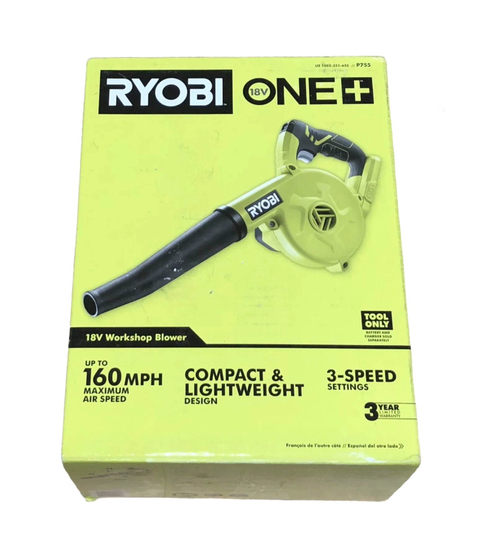 RYOBI introduces the 18V ONE+ Cordless Compact Workshop Blower (Tool Only). This compact and lightweight blower is ideal for cleaning up your workshop after a DIY job and professional jobsite areas. With a maximum air speed up to 160 MPH you can blow away dust and other messes in a flash. This workshop blower also features a variable speed trigger with 3-speed settings so you can adjust the speed to your needs with a maximum air speed with up to 100 CFM and 160 MPH. Best of all, it is part of the RYOBI ONE+ System of over 300 Cordless Products that all work on the same battery platform. Backed by the RYOBI 3-Year Manufacturer's Warranty, the 18V ONE+ Compact Workshop Blower includes an operator's manual. Battery and charger sold separately.