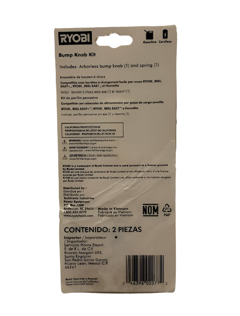 This arbor less bump knob replaces your worn REEL EASY knob. This fits your RYOBI or Homelite REEL EASY string trimmer head. Simply remove your worn out bump knob and replace with this new bump knob to keep your trimmer head running like new.