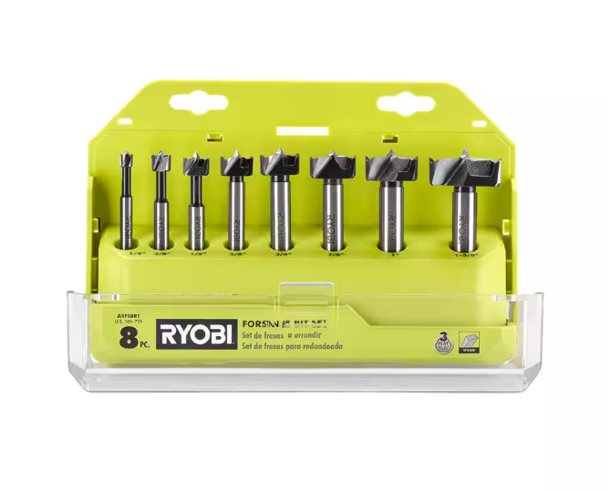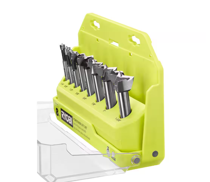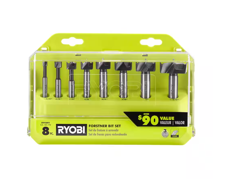 RYOBI introduces the Forstner Bit Set (8-Piece). Make clean holes in wood with the RYOBI Forstner Bit Set. The X-Wing design gives users high visibility and precision cutting. This set includes eight bits with 3-flat shanks to resist slipping.