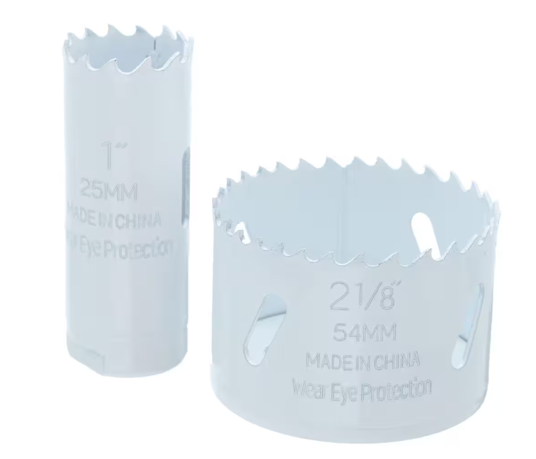 - Includes: Door Lock Bracket, Bi-Metal Hole Saws (1 in. and 2-1/8 in.), Arbor with Pilot Bit, 1 in. Wood Spade Bit, Bronze Oxide Drill Bits (3/32 in. and 1/8 in.), and 2 in. Double Ended Screwdriver Bit