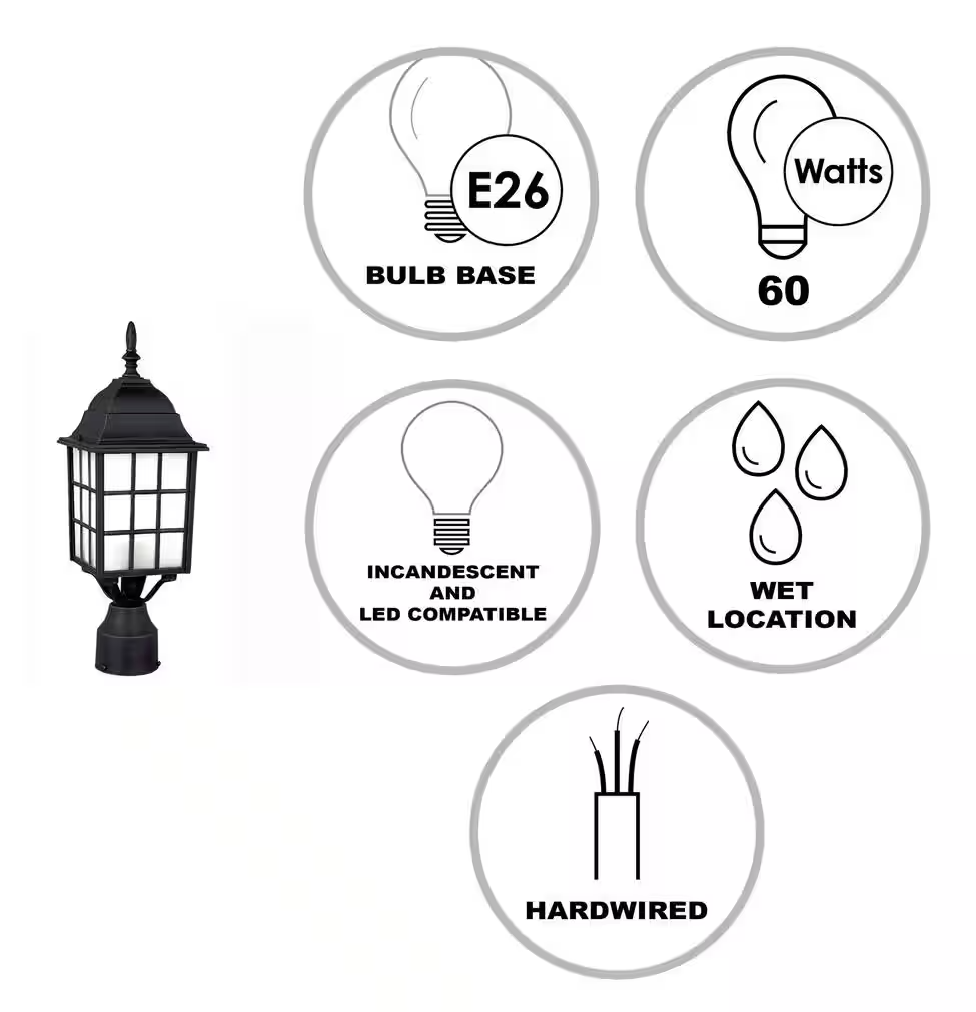 - Uses (1) medium base 60-watt bulb, not included