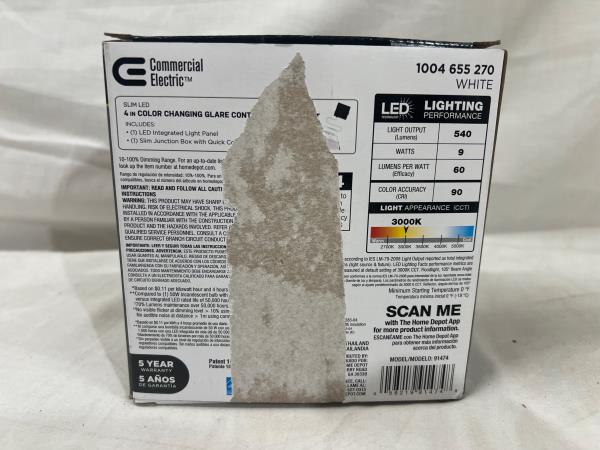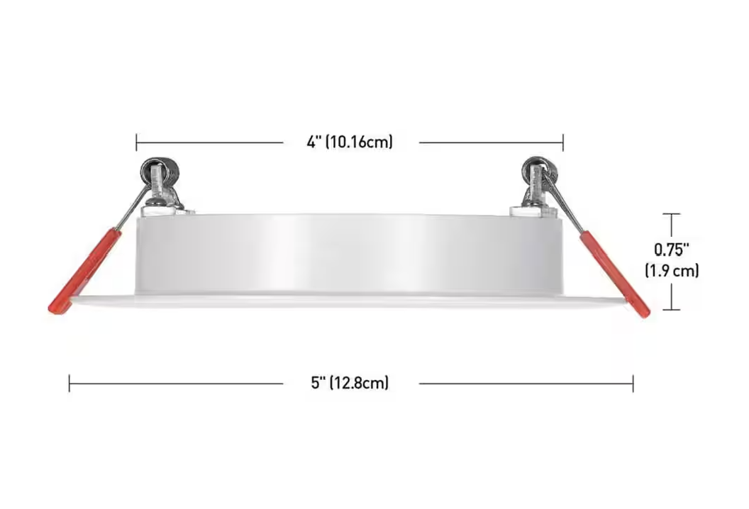 - EASY INSTALL SLIM LED: an ultra-thin profile, integrated LED and a slim junction box will not interfere with your joists or ductwork. Effortless push and click quick connects allows for worry free, easy installation and are the choice of professional electricians. Actual hole size is 4.25 in.; Trim size: 5 in.