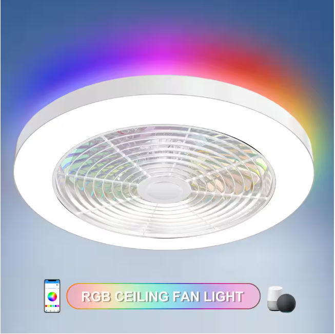 This is a multifunctional intelligent fan with lights, which can support the adjustment of 3000K warm light to 6000K cold light, and also has RGB color light function, allowing you to adjust the atmosphere according to different needs. Equipped with a remote control, it can also be controlled using Alexa or smart life applications, using simple voice commands to control embedded ceiling fans with lightss, such as "Alexa, turn on/off lights. And it also has reverse mode, adjustable wind speed, and memory function, making it a fashionable and beautiful multi-functional intelligent embedded ceiling fan with lights suitable for any scene