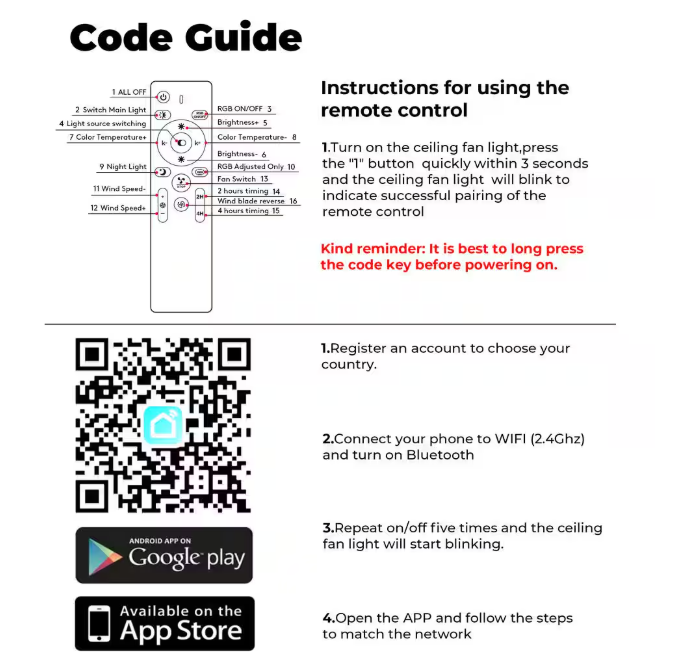 - RGB light: smart slim ceiling fan light can provide any awesome RGB ambient light you want, only supports 2.4GHz Wi-Fi, individual or group control, timers and schedules
