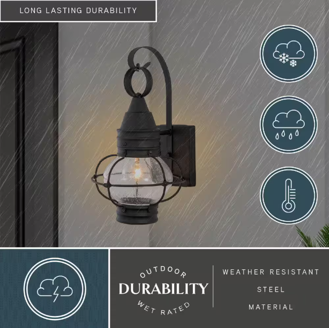 - Exterior wet rated; ideal for your covered porch, entryway, garage, or any other area of your home