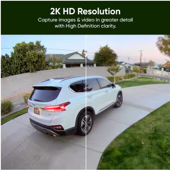 - 2K resolution + Color Night Vision-Capture images and video with greater detail, especially at night.