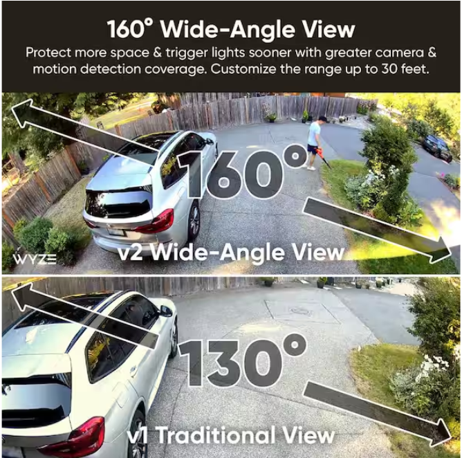 - 160° wide-angle view + 270° PIR Motion Detection-Protect more space and trigger lights sooner with greater camera and motion detection coverage in all directions. Customize the detection range up to 30 feet.